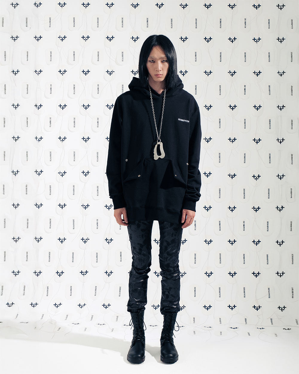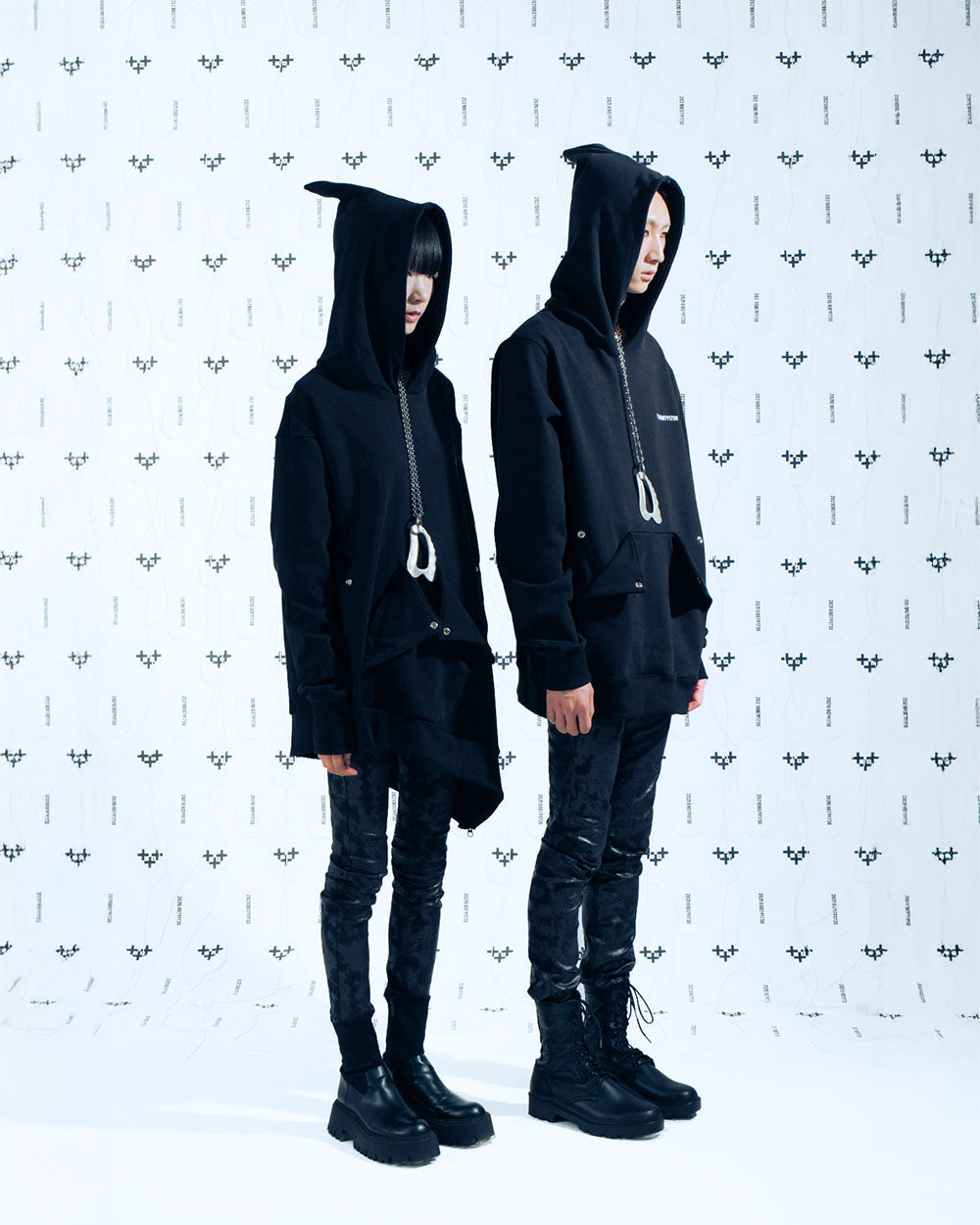 하나 하나 자체 디자이너들의 수작업으로 제작된 뒤쪽의 하트 쉐잎의 메쉬가 포인트인 후디 입니다.