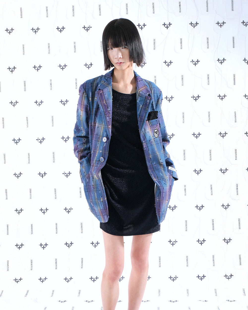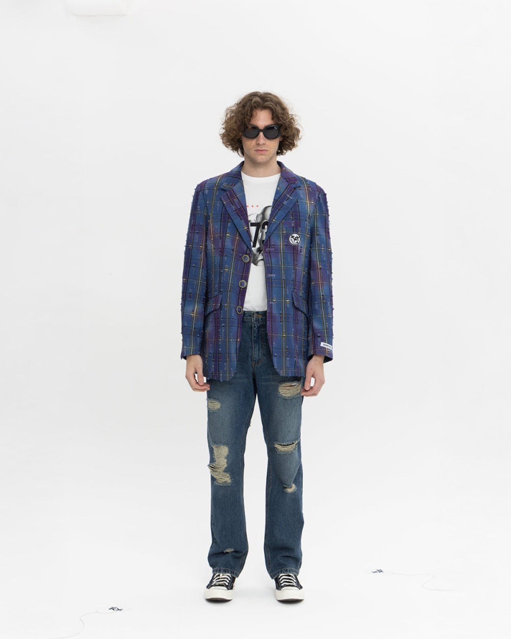 그런지 한 느낌의 소재로 제작된 봄/가을 에 입기 좋은 두께감의 블레이저 입니다.