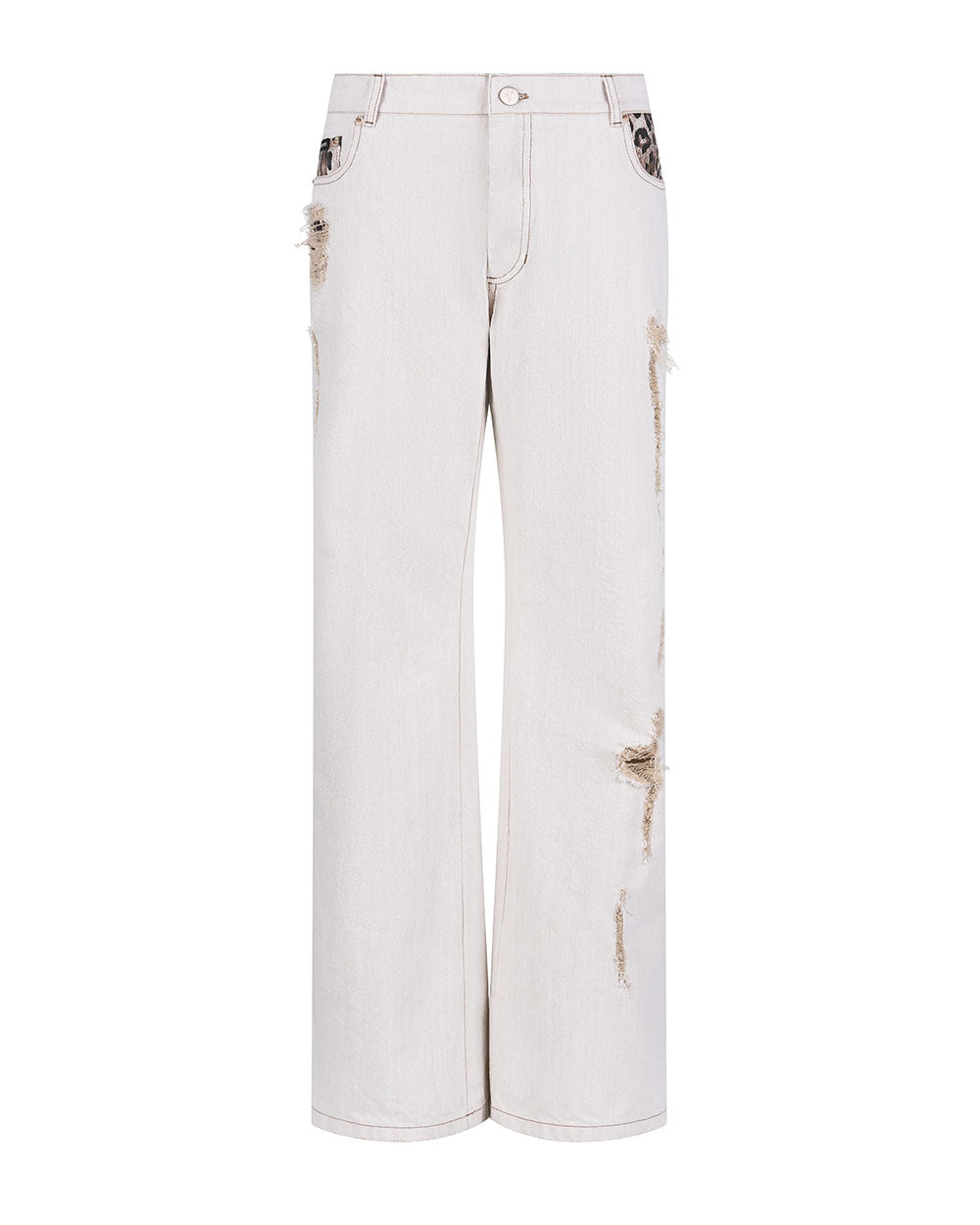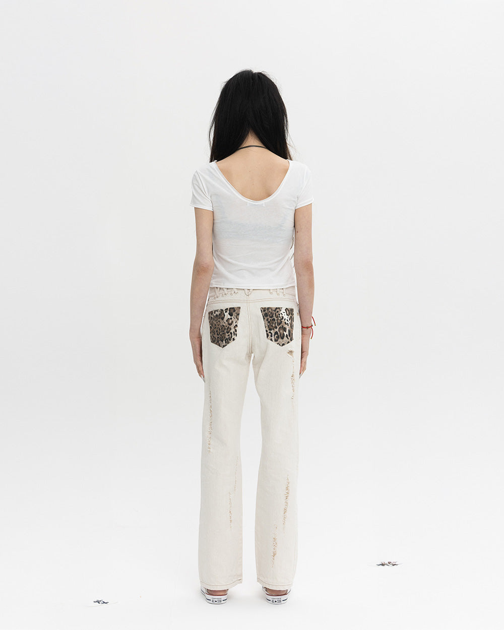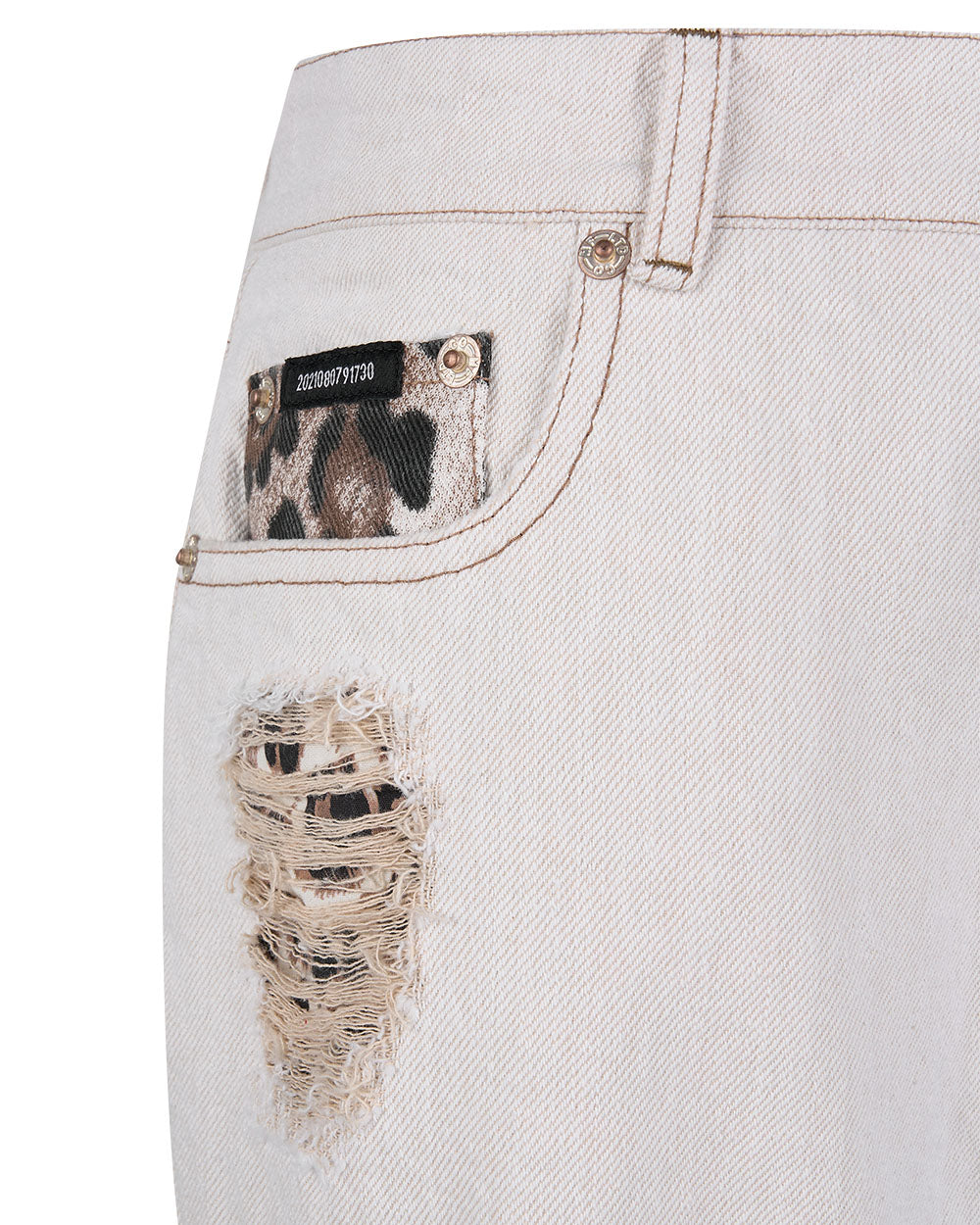 왼쪽 포켓 안감의 레오파드 포인트가 데미지 부분으로 보이는 디테일이 멋진 제품입니다.