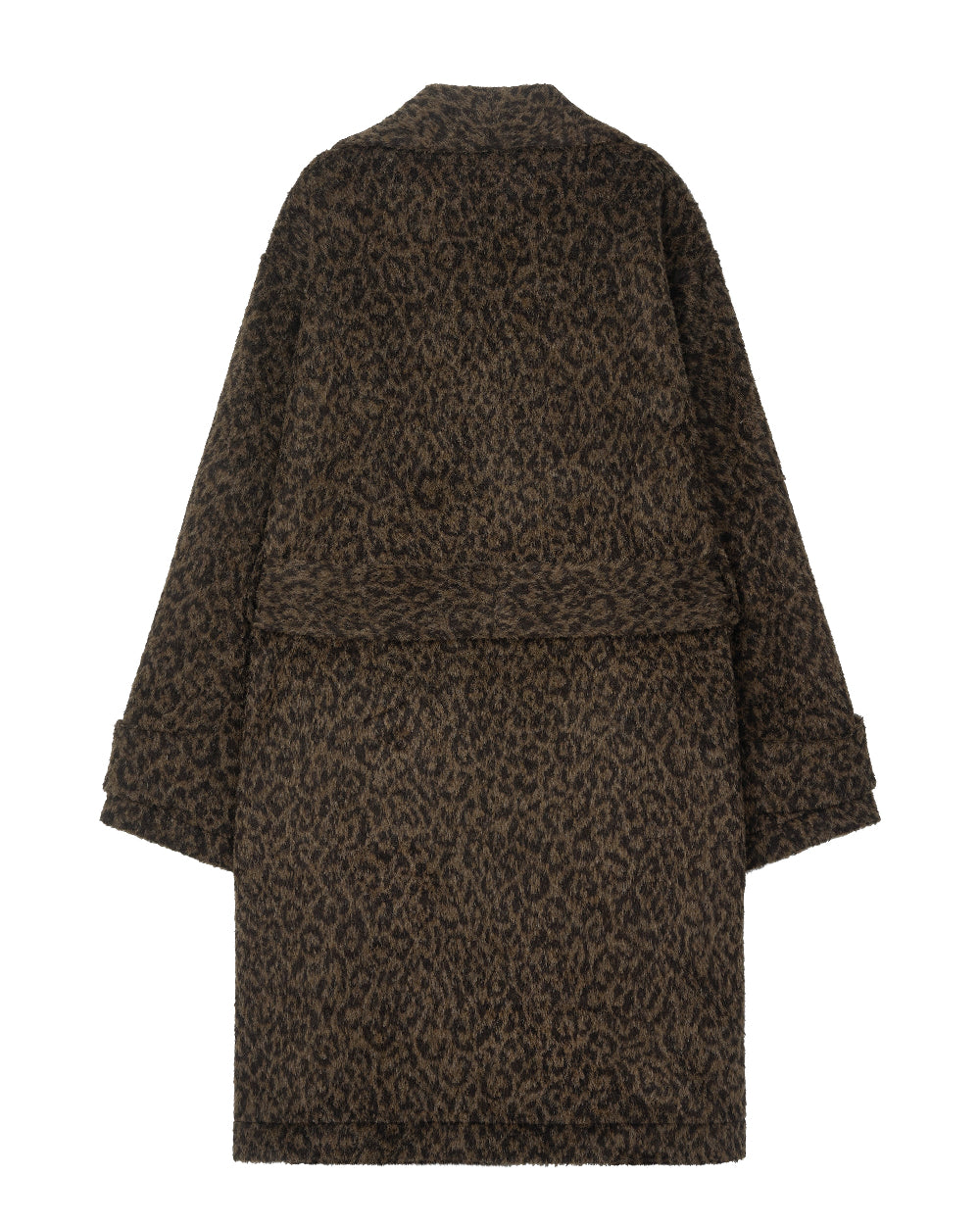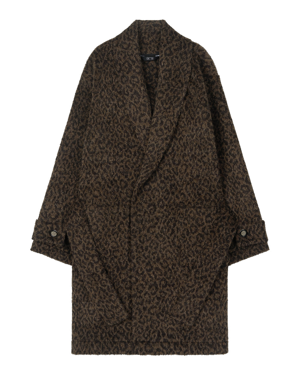 어두운 컬러의 은은한 레오파드 패턴이 매력진 코트 입니다.