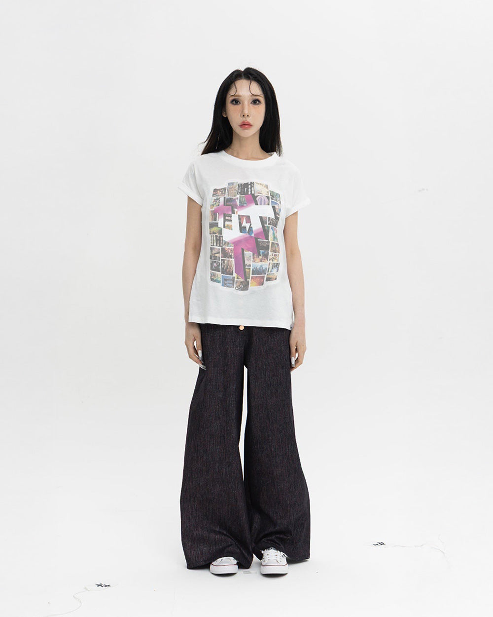 락 뮤지션의 엘범 커버에서 영감을 받아 만든 그래픽을 입체감이 있는 DTG 와 전사로 입체감 있게 표현 하고 메쉬를 91730의 디자이너가 하나 하나 자체 수작업으로 덧대서 고급스러움을 더했습니다.