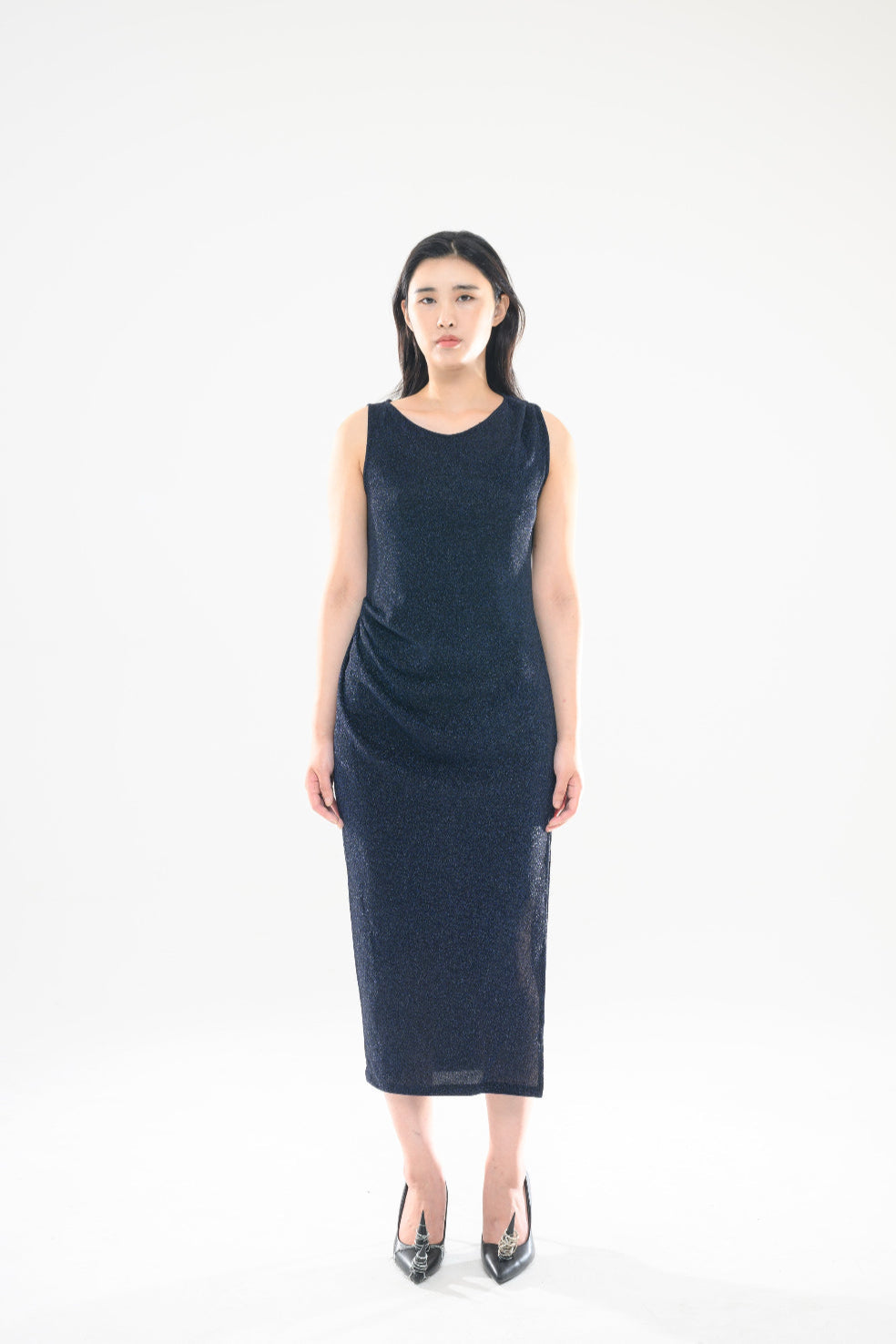 LONG PEARL DRAPE DRESS NAVY 롱 펄 드레이프 드레스 네이비