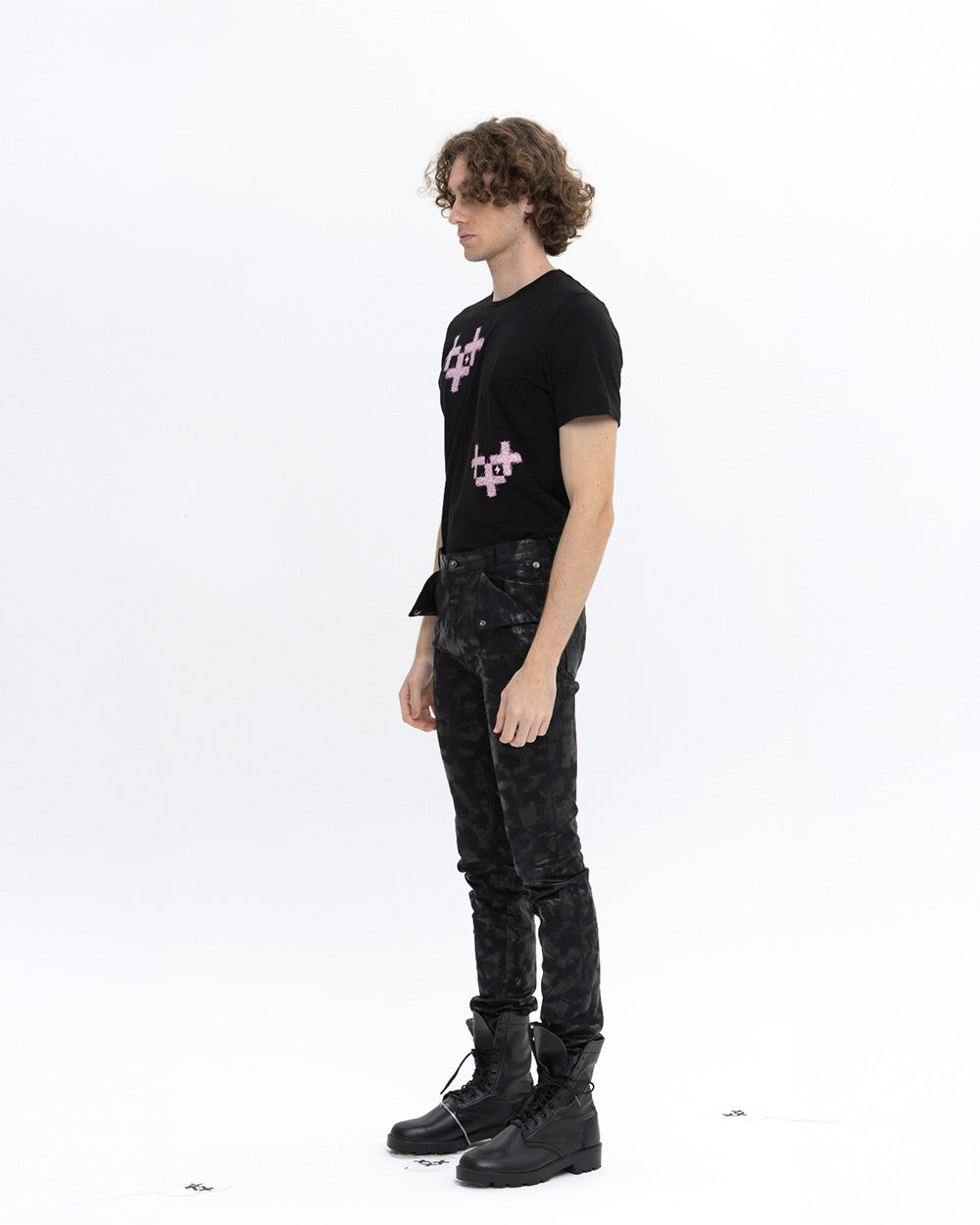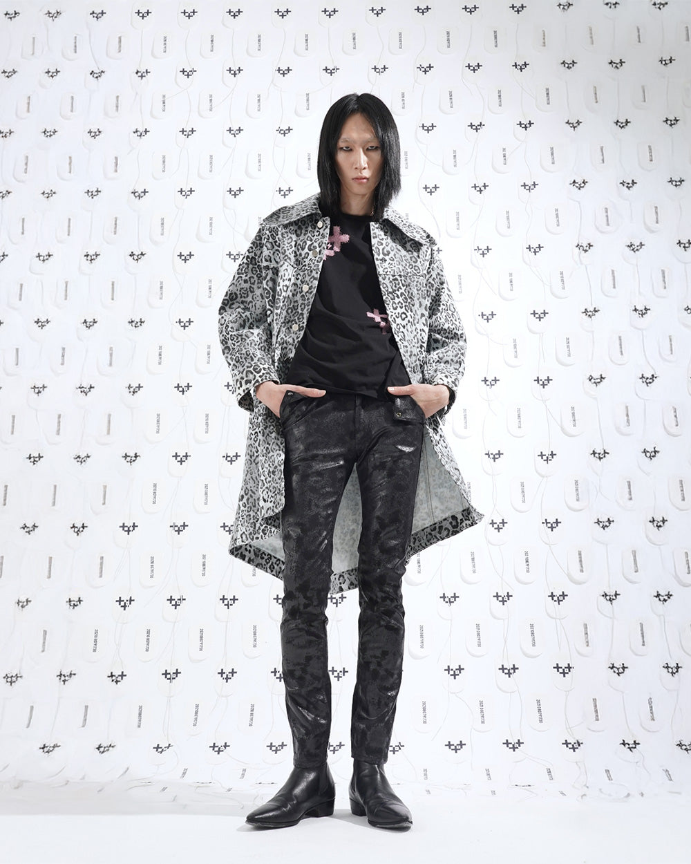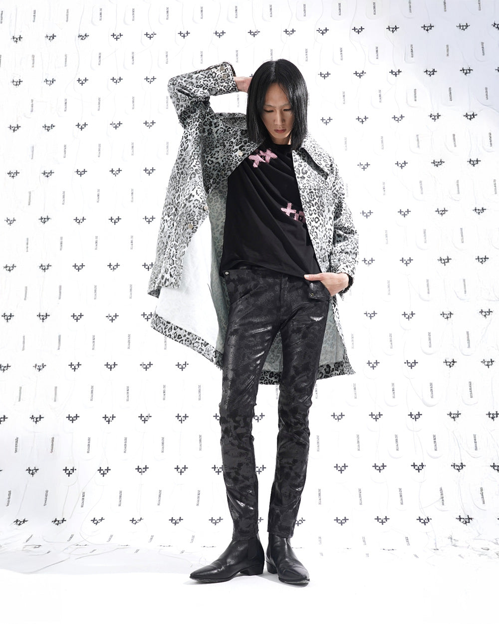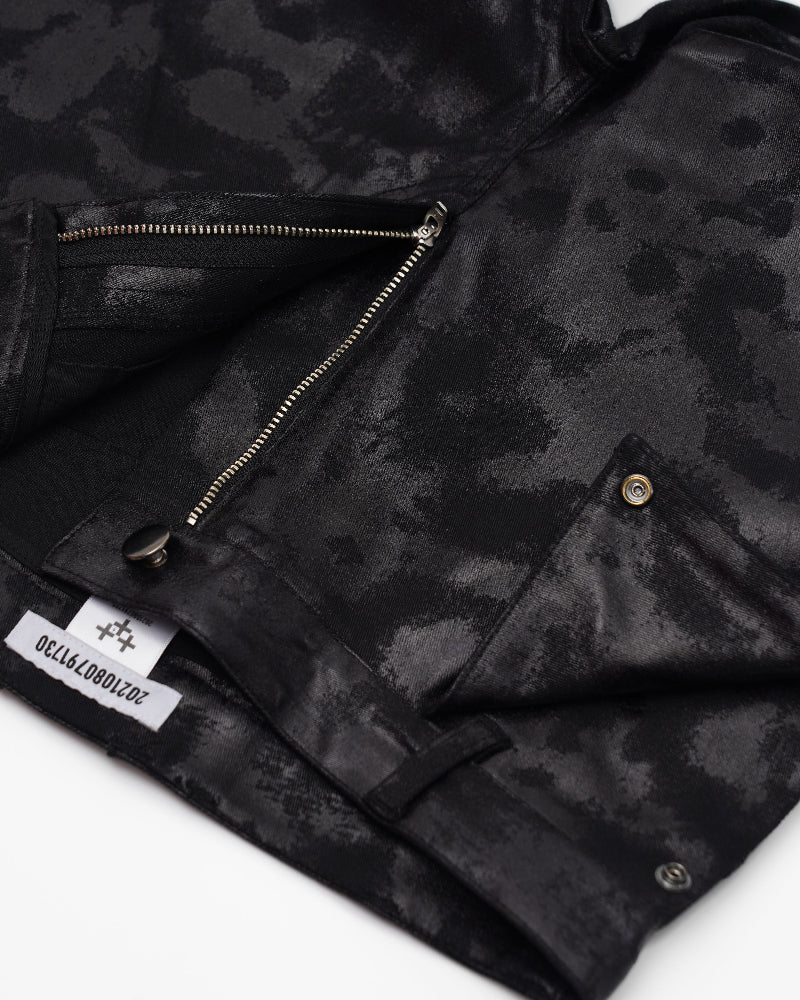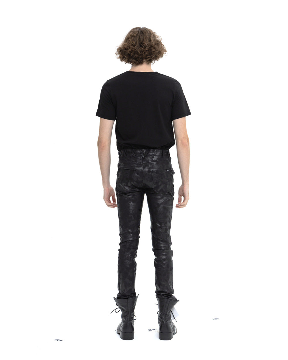 신축성이 뛰어난 코팅데님을 사용 하였고 가죽 처럼 보이는 코팅이 매력져서 블랙 코디에서 돋보이게 스타일링 할수 있는 스키니 팬츠 입니다.